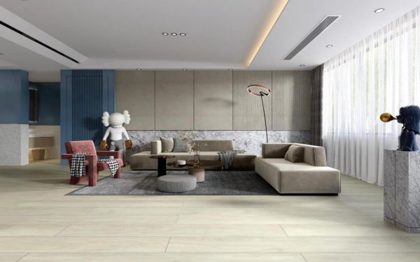 开阔大气的功能性美学空间,简约利落又极具设计感。保留必要的空间功能、点睛的装饰让人感到放松和惬意。灰色、白色为空间的主要搭配色,通过颜色的深浅变化,让空间更具立体感和层次感。卢森地板当代系列雪朗橡木灵感来源于瑞士雪朗峰,柔和中带有温度,细腻中彰显质感。浅灰色调与空间整体色调统一,同时也极具包容性,与局部的孔雀蓝、豆沙红都能很和谐的相处。让家拥有一种宁静、时尚的味道!
