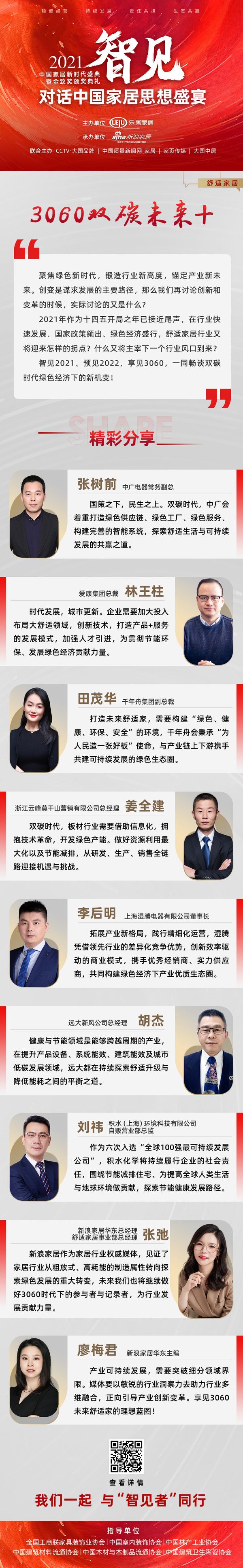 由乐居家居、新浪家居主办,CCTV·大国品牌、中国质量新闻网·家居、家页传媒、大国中居协办,全国工商联家具装饰业协会、中国室内装饰协会、中国林产工业协会、中国建筑材料流通协会、中国木材与林制品流通协会、中国建筑卫生陶瓷协会、广东省家居业联合会共同指导的《智见·2021中国家居新时代盛典暨金致奖颁奖典礼》——「对话中国家居思想盛宴」于12月13日正式开启。12月15日「对话中国家居思想盛宴」第四场《3060双碳未来+》线上论坛召开。