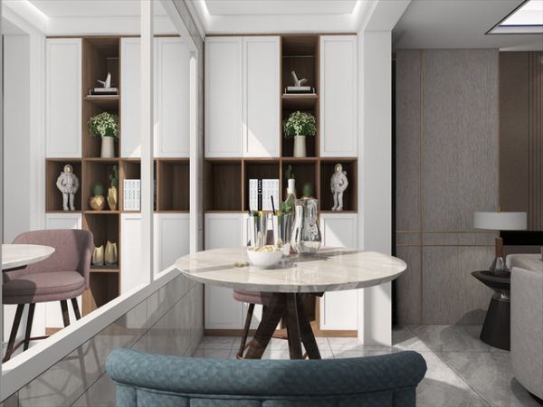 地面通铺的是创锐瓷砖750*1500MM规格中板,空间大气感遽然上升。