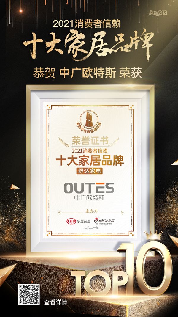 快讯|中广欧特斯荣获「2021消费者信赖十大舒适家电品牌」称号