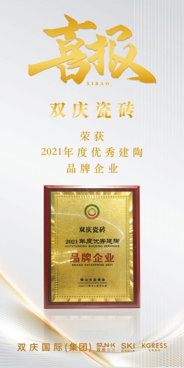 作为业内极具影响力的年度评选之一,此次颁奖典礼含金量十足!经过前期一系列的严格考察,双庆国际旗下高端品牌:SUN·K 双庆瓷砖凭借强劲实力与发展态势,卓越的产品优势与优质的口碑形象,在激烈竞争中强势突围,荣膺“2021年度优秀建陶品牌企业”这项重量级大奖。