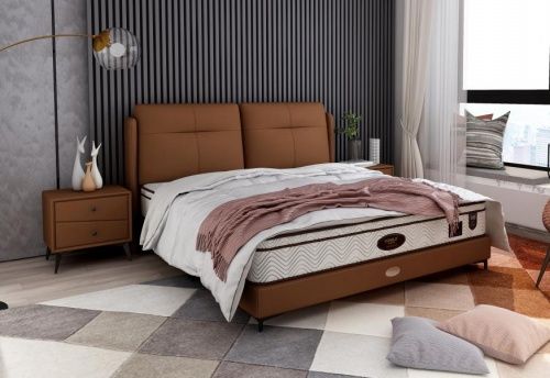 两段式床屏带来双倍呵护,饱满双靠包自然后倾,打造专属你的放松角度。东宝床垫PC304是一张稳重的皮床,厚重的床头设计,让新娘一看就能感到安心踏实。