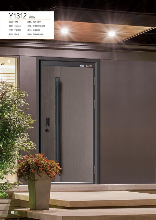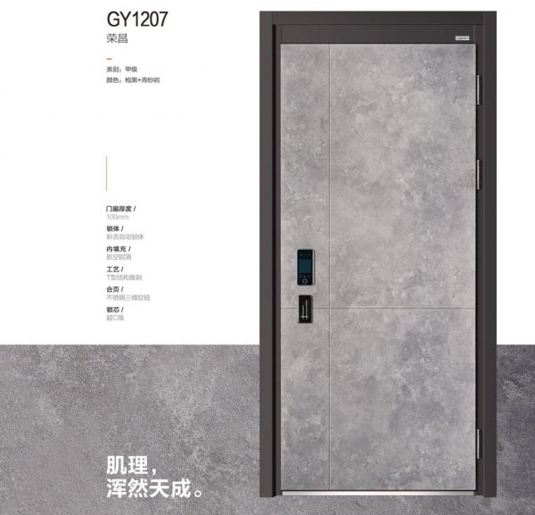 譬如说,御翔安全门旗下的GY1207荣昌,采用枪黑+青砂岩的配色,展现出了一种源自大自然的独特肌理,仿佛岩石一般的质感,被岁月所风干,浸透着设计者的心血与汗水;Y1310福君,采用了质感十足的烟熏木,内填充物质选择了航空铝箱,整款产品透着一股优雅风味,将现代美学的内涵展现的淋漓尽致,令人印象深刻。