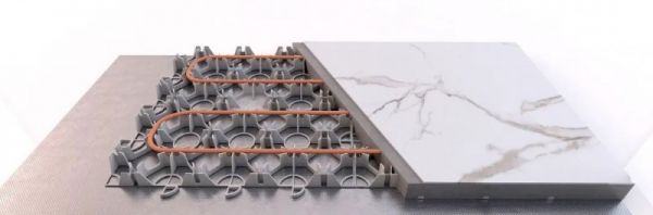 有别于传统普通方式,新型地砖地热模块完美的把回填层和模块结合一起,解决了水泥在使用一段时间后,因为温度的变化以及保温反射膜的隔断,而产生开裂及脱层的问题,完美的避免了地砖铺贴后的空鼓及开裂现象。