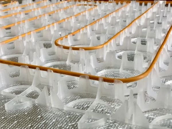 新型地砖专用地热模块采用模块化设计,模块之间有卡扣相连,多块组合便捷,布线方便,一个工人一天就能完成100平米的铺设施工。而且水泥回填十分方便,一次成型,模块独有的结构还能节约水泥材料。