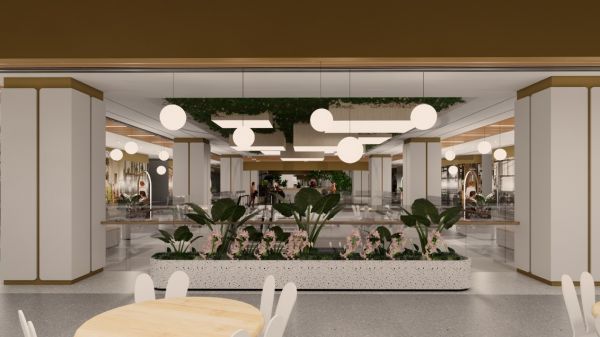 在餐饮荟聚区,绿植座椅和生态墙壁将是最引人注目的元素,设计团队十分注重餐饮品牌与生态景观的融合,因此将绿植墙壁打造命名为“垂直花园”,是对该空间的最大化利用,使每个楼面都有自己的独特韵味。