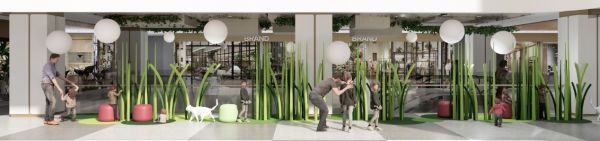 多首层、多退台的建筑结构组合,加之分布于各层中庭的花草景观,使整个商场空间串联成一个丰富的绿色能量场,给人以森林叠境般的风情体验。