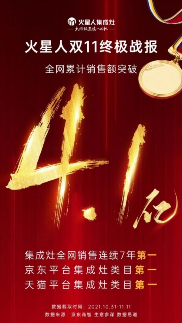 今年618,我们看到的是,火星人连续六年蝉联集成灶品类第一名,而在双11,战报则显示火星人销售额突破4.1亿元,全网销售连续7年实现行业第一。可以说,线上电商渠道一直以来都是火星人强势表现的主战场。