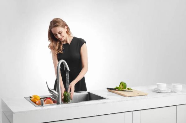 一方面,将厨卫五金功能化、智能化创新升级,推出包括水易净系列水槽、梵拉智能触控龙头、水触媒智能水槽、洗杯器手工水槽、小蛮腰水龙头等在内的智能厨卫五金产品,将智能、健康等众多新元素融入各个家居场景。例如,邦克创新推出水触媒智能水槽,不仅高颜值,还搭载抗菌、祛除果蔬农残留、食品智能净化等多种强大使用功能;带来全新的厨房体验,让用户享受到健康舒适的净化生活。