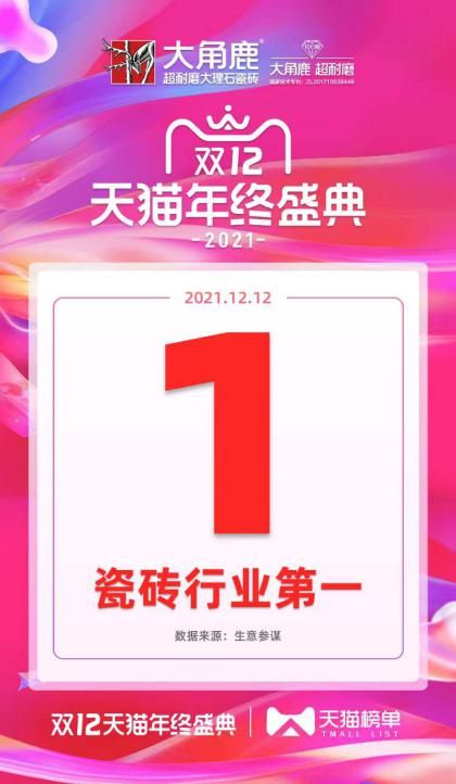 大角鹿瓷砖再创佳绩,天猫双12销量领先