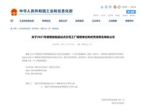 新浪家居智能家居频道讯 1月4日,国家工业和信息化部装备工业一司关于2021年度智能制造试点示范工厂揭榜单位和优秀场景名单完成公示,共110个工厂和241个场景入选。海尔智家4家互联工厂上榜:海尔天津洗衣机互联工厂、海尔中央空调互联工厂2家工厂入选智能制造试点示范工厂揭榜单位;海尔中德滚筒洗衣机互联工厂、海尔青岛模具互联工厂2家工厂典型场景入选优秀场景名单,成为国家认可的典型示范。