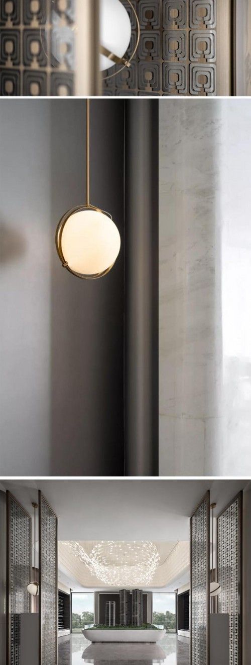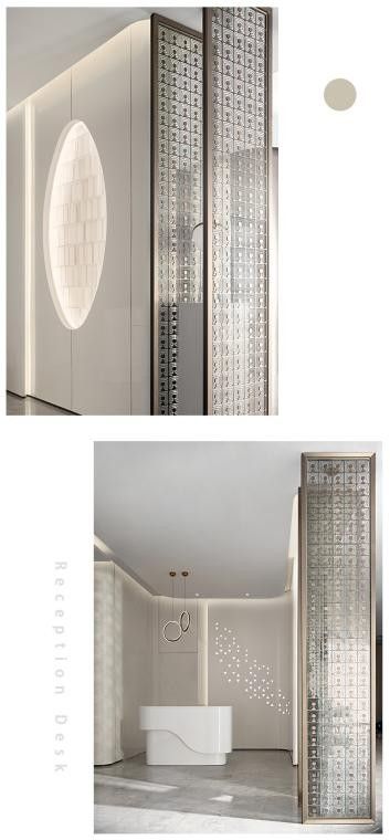 初入前厅,极具视觉冲击力的格栅门帘首入眼里,古典园林中的洞门,娴静文雅的吊灯,都在流露着中华传统文化柔润婉转的美学追求。直线绘出两点间的最短距离,圆形却是自然界馈赠的神秘礼物。接待厅多处采用圆的设计,像在回应生命力量的无限性,是调动空间灵动的调剂,亦是对自然的回馈。