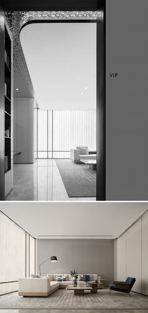 从共享过渡到私人,就是喧闹回到宁静的时刻。VIP室延续了冷静温和的色彩组合,仿佛身处充满克制美学的空间站,容纳着不可估量的内涵。生活和想象推动着未来城市的不断演化,玖裕茗院在有限的尺度中,生发出无界的思维阵地和体验感受,只愿万家灯火,终有一处港湾。