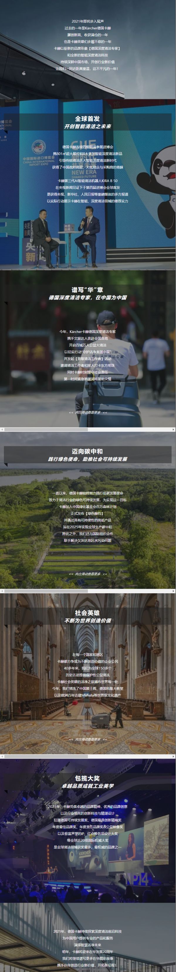 近日,德国卡赫发布2021年度记忆,其中值得关注的企业大事件有连续携8大首发智能深度清洁新品亮相进博会、正式发布「绿色赫约」、包揽iF、红点等多项国际权威大奖等等。