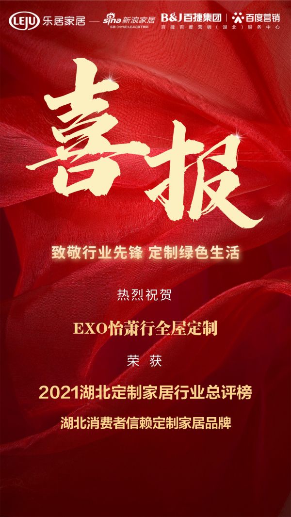 喜报|EXO怡萧行全屋定制荣获2021湖北消费者信赖定制家居品牌
