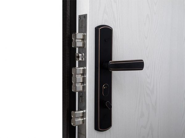 从门的侧面可以看到,日上运用了四位一体联动锁柱和精钢防锯锁柱,这种设计和做工,让盗贼只能望而却步。全包围的密封设计和加厚的金属面板,让整个防盗门具备了防腐、防锈、防暴力开启的“三防”品质,并且增强了防盗门的隔音保温效果。