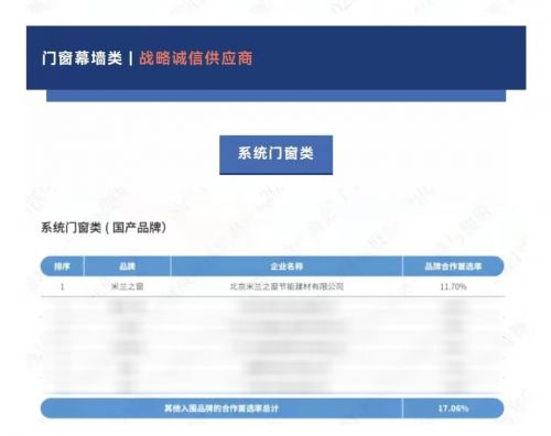 此次再度蝉联诚信报告首选供应商,是米兰之窗发展历程中具有里程碑意义的一件大事。作为中国最具市场竞争力的系统门窗品牌,系统门窗品牌合作首选率第一,系统门窗首选米兰之窗!