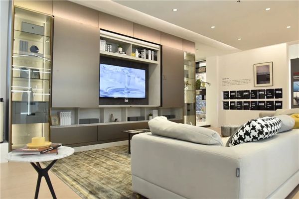 领尚电视柜莱茵河畔一体化的视觉设计减少了空间的压抑感,更显得宽敞明亮。柜体内设有电视摆放区、装饰品摆放区满足了客厅物品存放的需求。为了避免日常落下灰尘,还可以通过电动遥控关闭柜门,让物品藏于无形。