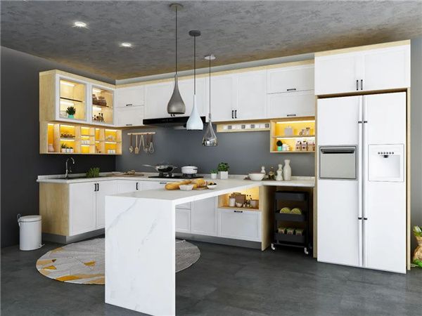 厨房收纳一个橱柜就可以搞定。空间小的厨房可以选择淡雅外观设计的橱柜,可让空间显得更加明亮。