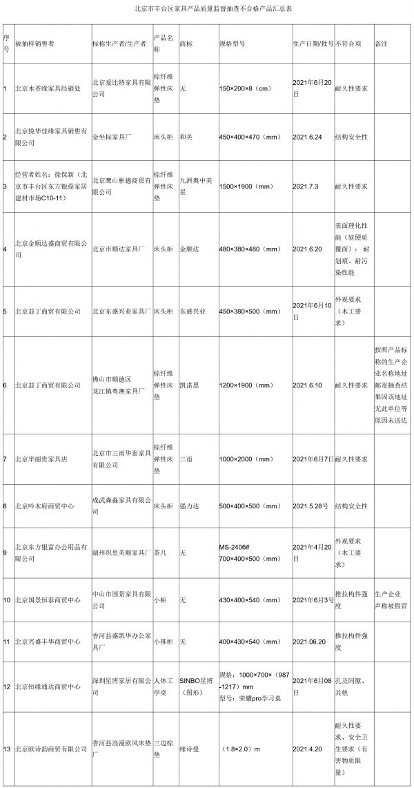 快讯 | 北京市丰台区市场监督管理局抽查:13组家具产品不合格