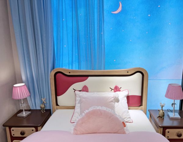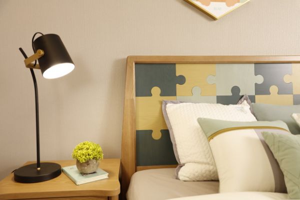 孩子独自睡,多少都会有些怕黑,在床头给孩子安置了一盏简约台灯,陪伴孩子入眠。