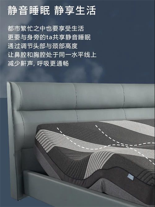 除了可以调整睡眠模式,床垫还用优质的原材料辅以黄金配比工艺,打造出如云般舒适的睡感体验,让你在高品质睡眠中褪去一天的疲惫,不让疲劳值积累,降低发生打鼾的概率。