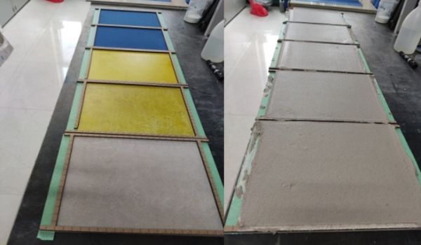 通过试验对比图可以看到:涂刷后,美巢墙锢促使基层粘结力提升至空白样板的1.5倍,其他品牌则未表现出明显提升;拉拔后,美巢墙锢被破坏程度为样板本体破坏,其他品牌被破坏程度均为界面破坏。试验结果证明,美巢墙锢粘结强度高,更具优势。