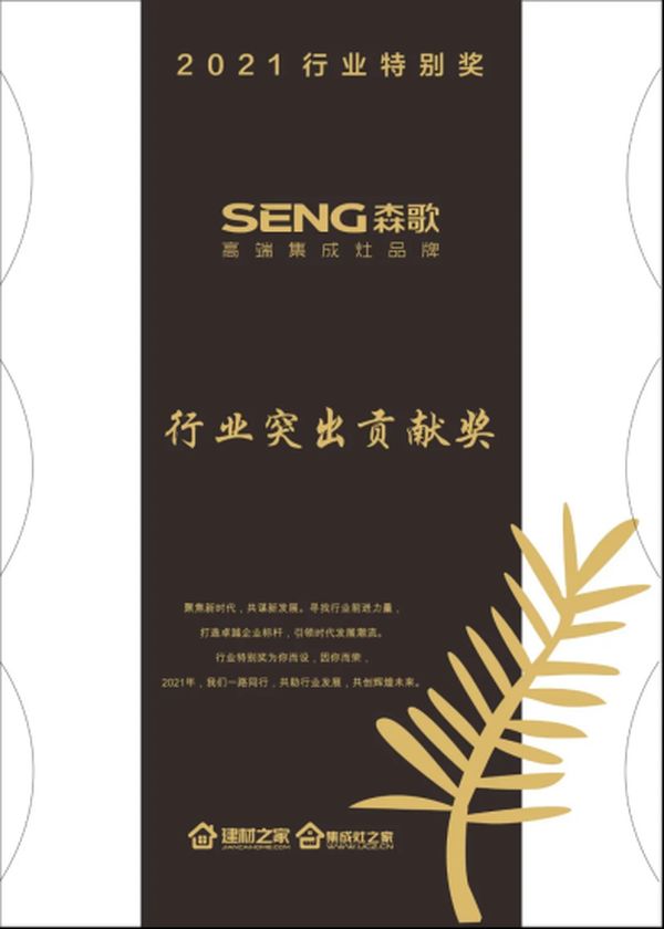 2022年1月6日第六届建材之家年度盛典暨“选好材”平台发布会在嘉兴隆重举行。知名品牌、资深专家齐聚一堂共襄盛会,对集成灶行业的发展现状及趋势进行了深入探讨。森歌以极致品质和非凡口碑,荣获“2021星翔奖十大品牌”和“2021年度行业突出贡献奖”,卓越品牌实力再次得到绽放。