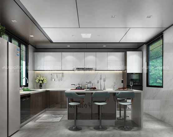 首先厨房吊顶一定得做好,考虑到防潮、抗油污、耐腐蚀、易清理这几点。且厨房温度较高,顶面必须要耐高温的材质。