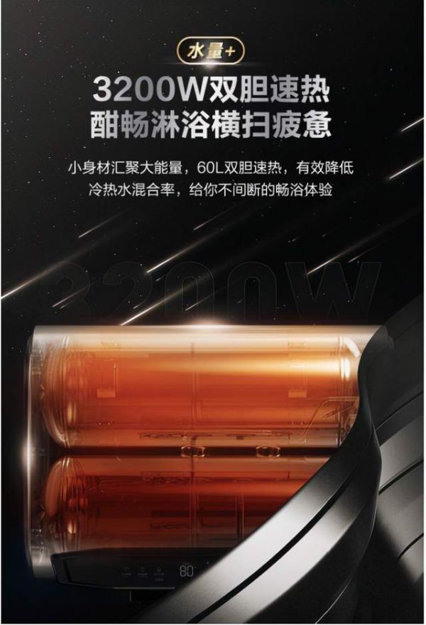 美的电热水器TQ6小身材汇聚大能量,3200W双胆独立速热,热水分层降低冷热水混合率,减少等待热水的时间。它可以实现10倍增容水量设计,澎湃热水持续供给不卡壳,洗澡更畅快。