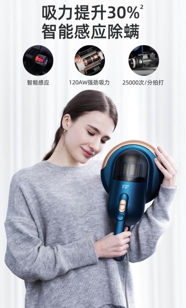 小狗MC05是一款专业的家用除螨吸尘器,能有效遏制螨虫、细菌等有害病原体给家人健康带来的隐患。它内置的智能感应除尘系统可高精度、连续检测气流中的微尘及过敏原数量,红黄蓝指示灯可以实时显示清洁程度,除尘除螨效果直观可见。电动滚刷25000次/分大面积、高幅度拍打,可以震出深层藏匿的灰尘、螨虫、皮屑等,120AW的强大吸力轻松吸除各种隐藏的脏污,60℃大流量热风辅助除湿除螨,UV紫外线灯杀菌率超99.99%。它还拥有精钢滤网+H12级HEPA+排风海绵,实现整机多重过滤,能够拦截99.95%小至0.3微米的螨虫及微尘,有效防止二次污染。