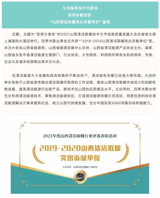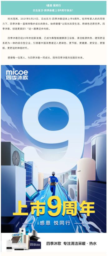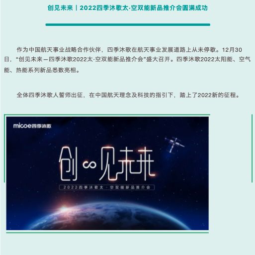 家电快讯|四季沐歌2021年度回顾:上市9周年、太·空双能新品亮相、迈向碳中和