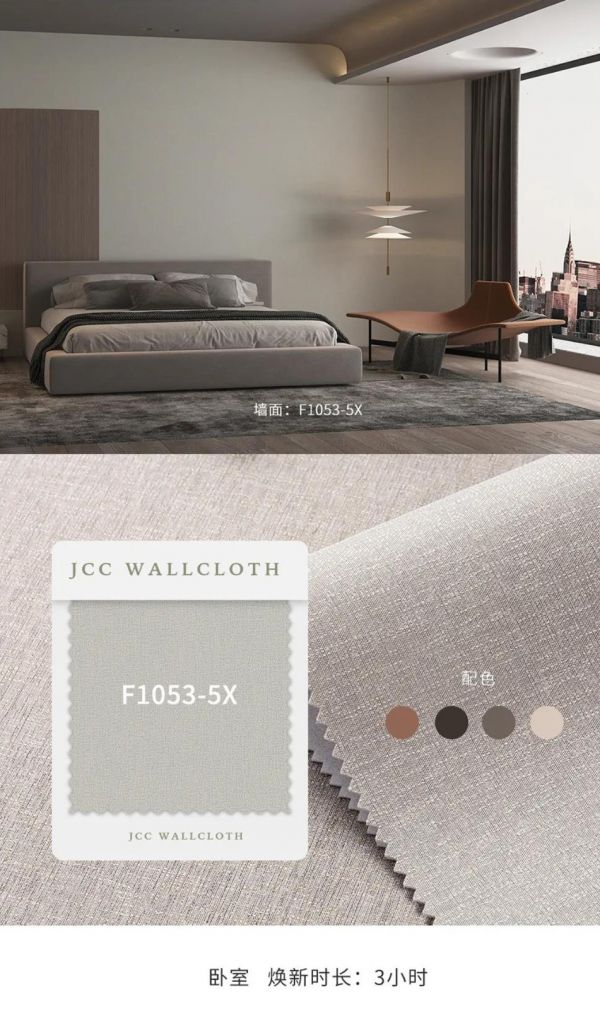 第三层水刺无纺布:强度高,透气性好,对墙布整体起到一个定型的作用,避免了墙布上墙后颜色变暗,以及墙面质感较硬的问题。