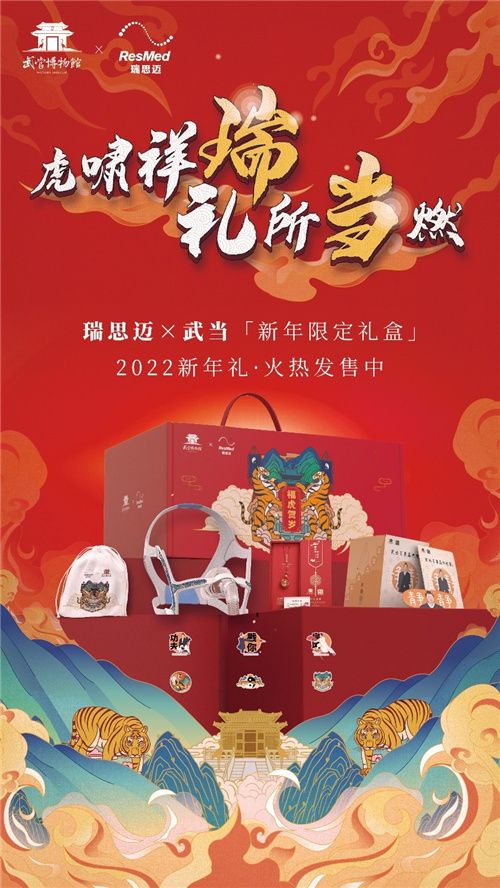 2022年春节即将来临之际,全球睡眠和呼吸领域领导品牌瑞思迈与武当IP联合推出「瑞思迈×武当限定礼盒」,向大家送出第一份新年“开运”好礼。礼盒创新性地将医疗器械与国潮元素相结合,延续中国传统美学,用中国红、国潮手绘及虎年元素传递浓郁年味,是数字健康及数字互联医疗器械全球领军品牌携手中国传统文化IP的全新尝试,引领医疗器械行业风向标,近一步拉近了与消费者的距离。