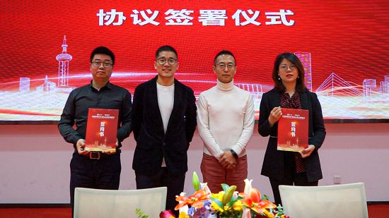 左起:牛妈妈平台CEO李超群、上海米居网络科技有限公司创始人牛大龙、TATA木门董事长纵瑞原、TATA木门大客户事业部总经理谭萍