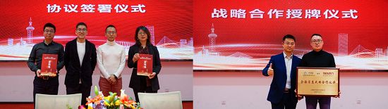 接下来,会议进行到双方全国战略合作协议签署的仪式环节。首先,牛妈妈平台CEO李超群和TATA木门大客户事业部总经理谭萍,在全场的热切期待与双方领导的见证下,完成了正式签约。 随后,是全国深度战略合作伙伴授牌仪式。由牛妈妈平台COO游寰将一方铜匾赠与TATA木门上海分公司总经理王耀奏。