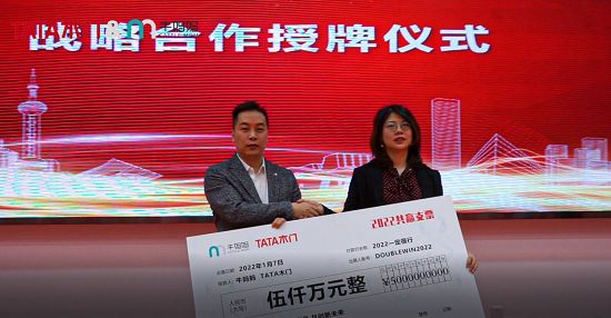 签约环节后,牛妈妈还设计了战略合作启动仪式的环节,将2022年的战略目标化为一张5000万元的巨大支票,由牛妈妈平台生态发展部负责人李继贤,赠予TATA木门大客户事业部总经理谭萍。也以这种形式,表达了牛妈妈对未来携手TATA木门,达成更高层次的业绩目标的强烈决心。