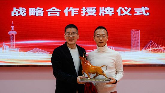 仪式的最后,作为TATA木门的深度战略合作伙伴,上海米居网络科技有限公司创始人牛大龙,还准备了一尊富有寓意的铜铸福牛,赠予TATA木门董事长纵瑞原。福牛的底座上刻有一行字:牛转乾坤试宏图,纵横捭阖谱新篇。一方面,寄予了牛妈妈对本次战略合作的美好期许,另外又将两位领导的姓氏巧妙融入其中。