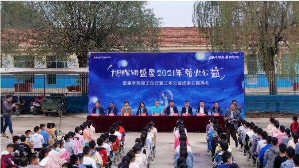 2021年10月15日,旭辉银盛泰“2021年‘萤火公益’援建学校竣工仪式暨三周年公益成果汇报典礼”在潍坊市临朐某庄小学隆重举行。山东旭辉银盛泰集团总裁李扬先生,青岛银盛泰初禾慈善基金会负责人任奕霏女士,青岛建设集团执行总裁邱世翰先生,以及临朐教体局领导与学校师生代表,共同参与了本次活动。