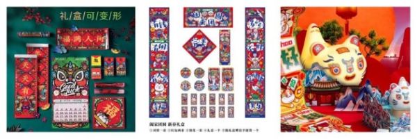 除了传统的福字、春联,上海美术电影制片厂另辟蹊径,用飞行棋、扑克、鹅棋、贴纸、灯笼等打造了一款可玩性极强的神鹿迎春礼盒,其中以敦煌与上美影为主题制作的三联式神鹿迎春新年拼图,成功勾起不少人的童年回忆。吉兔坊则运用非遗泥彩塑技艺,原创吉虎·瑞瑞,并以此为基础,推出带布艺守财虎、手链、保温杯等不同内容的多版礼盒。