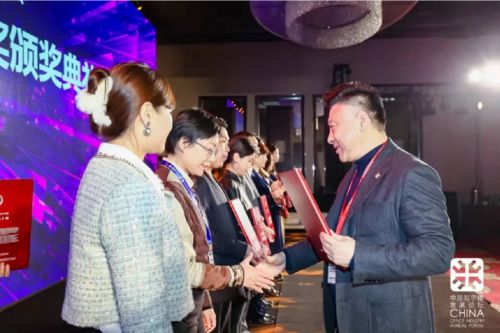 △ 全联房地产商会写字楼分会副会长、米兰之窗董事长马俊清先生为第18届中国地产“金厦奖”颁奖典礼颁奖