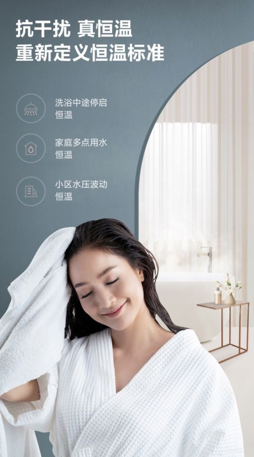 “一级恒温”这一产品认证,不仅为消费用户在购买真恒温产品提供参照标准,同时也是在牵引整个行业迭代升级,美的HL6恒温王热水器的“抗干扰,真恒温”则是其中的标杆所在。
