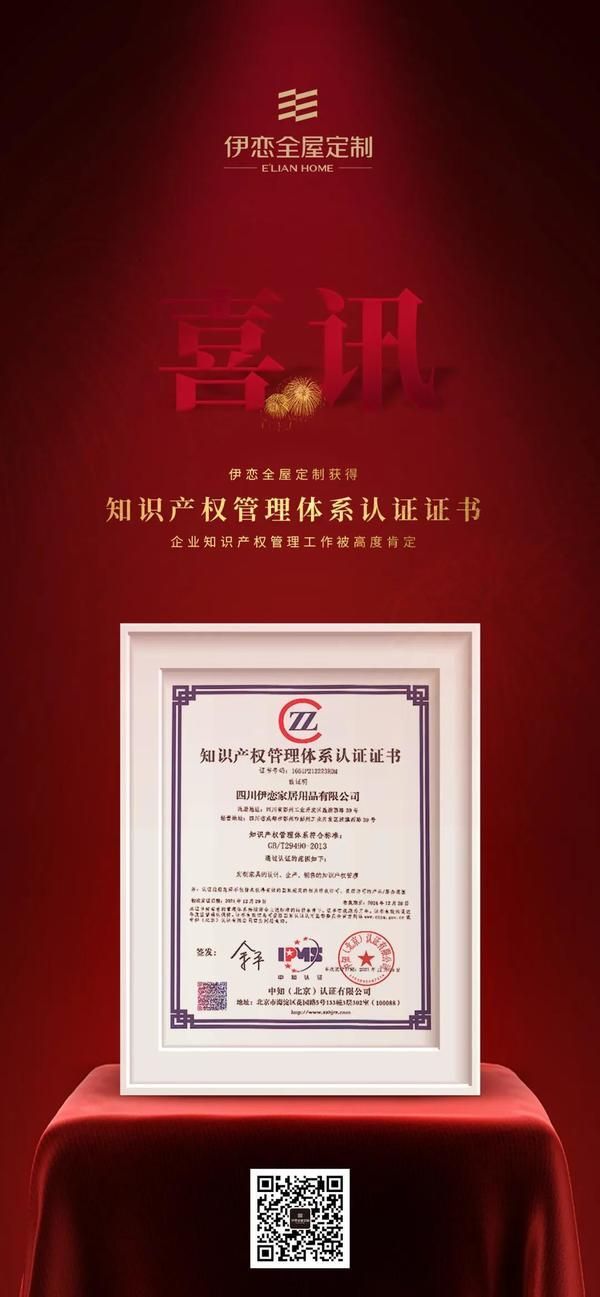 网址:定制快讯|伊恋获知识产权管理体系认证证书 https://c.jiaju82.com/news-view-id-790099.html