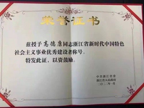 德意控股集团董事长高德康荣获“浙江省新时代中国特色社会主义事业优秀建设者”