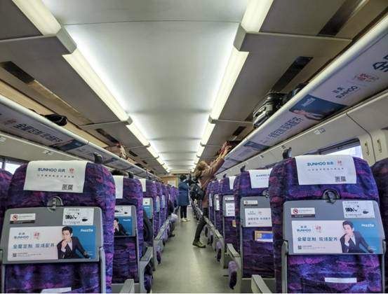 强势打造的双虎品牌高铁冠名列车,通过外车身彩贴、头枕巾、小桌板、海报、行李架贴、车外门贴、语音播报、LED滚动屏等全媒体形式全方位展示品牌魅力。