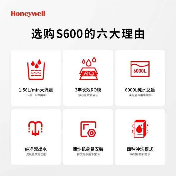 例如霍尼韦尔S600反渗透直饮家用净水器,就充分考虑到了高楼家庭对于净水的需求升级。这款霍尼韦尔净水机采用反渗透过滤系统,高效净化水质,净化后的直饮水水质入口纯净清甜,口感更佳。