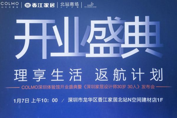 2022年1月7日,高端民族品牌COLMO旗舰店暨《深圳家居设计师30岁 30人》发布会在深圳门户北站N 空间香江家居盛大开业。美的集团深圳运营中心总经理王永奇、深圳家装家居协会会长李晓锋、北站生活空间科技有限公司董事总经理张伟、香江家居北站商场总经理李四萍、香港环亚联合设计创始人杨志伟、蜜蜂组室内设计创始人、杨福权瑞克国际(香港)设计有限公司创始人宋爱生及30岁优秀设计师代表亘古艺术设计陈设总监陆湘、品界空间设计创世人范鹏、安舍室内设计创始人熊魏等近百位设计师出席开业盛典。