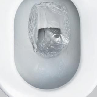 高仪抑菌表面技术就是将银离子烧制进陶瓷釉面,使陶瓷表面可以抑制99%的细菌生长。高仪水瓷超净技术则是形成超级亲水涂层在马桶内部能够使水渗入污物下方,仅借助水的力量带走污物。为防止水垢产生,还采用了不会让羟基暴露的结构,让陶瓷表面始终保持光亮如新。所以她家的马桶用了这么久依旧像是新的一样。
