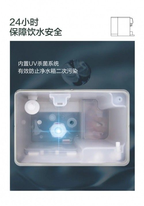 内置UV杀菌系统,防止净水箱二次污染,双重守护,双重净滤,无懈可击。
