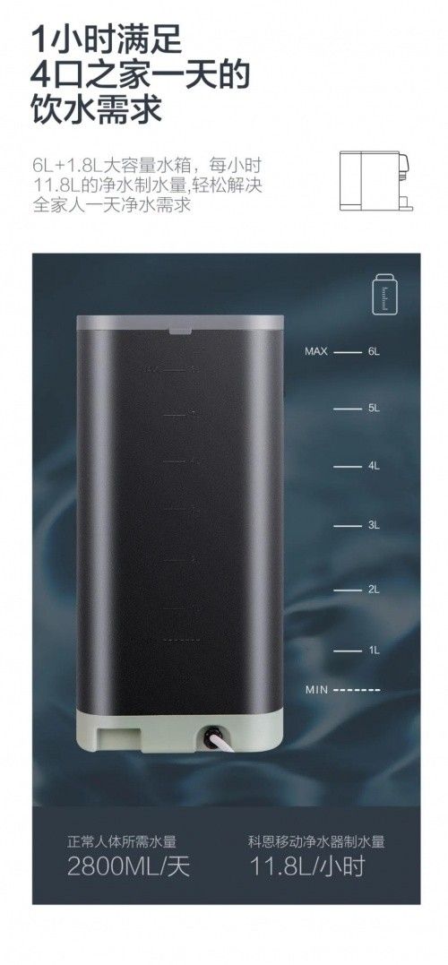 普通净水器净水制水慢,很难满足高峰期家庭对纯净水的需求。上派多功能移动净水器每小时净水制水量高达11.8L,超大6L+1.8L的水箱容量加持,轻松解决一家人一天的净水需求,高峰期也无需等待!